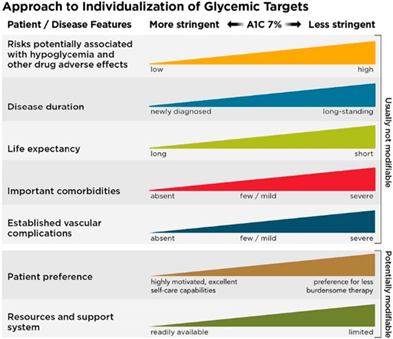 Let’s face it the A1c can be one of the most anxiety provoking parts of treating and living with Diabetes. As a provider, if your patient’s A1c is above target, you may have a few reactions: UGH!, What is going on?, What are they not doing?. A thought about non-compliance may cross your mind. Let’s sit on the other side of the exam table. The person with Diabetes, is holding their breath waiting to hear that A1c. They are anxious that it is not what it should be. They are already reprimanding themselves for not doing better and fearful of what their provider will think and say. Something to consider: the A1c reflects 90 day average and does not tell the story of a recent change in medications or lifestyle. Have you looked at the A1c in terms of improvement and not purely target? What is the target? (see graph below and check out this link: https://diabetesjournals.org/care/article/46/Supplement_1/S97/148053/6-Glycemic-Targets-Standards-of-Care-in-Diabetes ). Consider what contributed to the result the contributors to the result (illness, steroid therapy, inability to access medications, major life stress). Give positive feedback on their hard work on improvement. Have you acknowledged that they may be disappointed in the result? Has an adjustment in therapy been considered. Be sure to have a conversation about ALL of these things. The A1c is complex, don’t view it as the end all and be all of Diabetes management and cannot be interpreted in a vacuum. Remember, no one with Diabetes wants a high/above target A1c or to be “sick”.